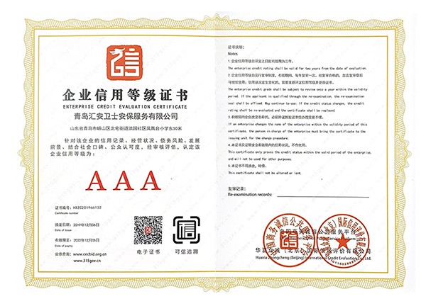 企业信誉等级证书